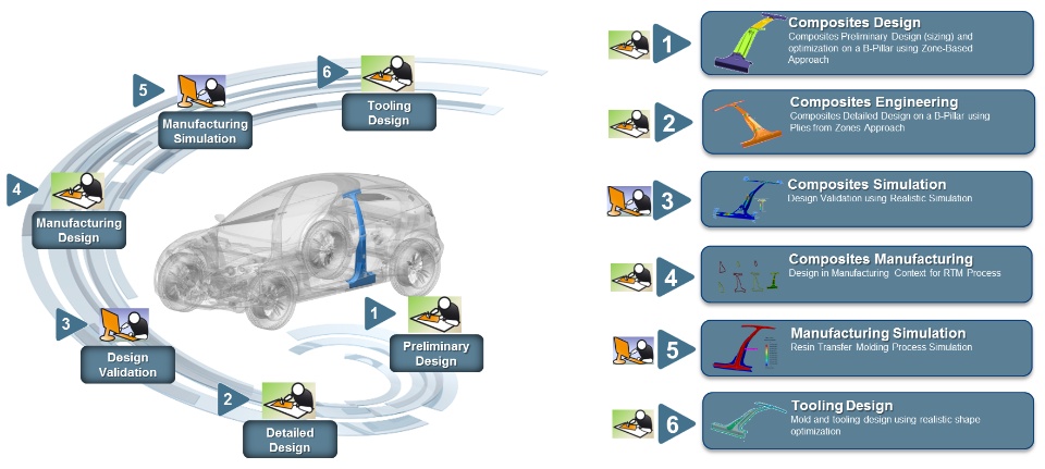 Using the example of an automotive B-Pillar the eSeminar aims to show how the 3DEXPERIENCE platform provides the basis for all stakeholders involved in the design and production of composites components to collaborate in order to ensure the final design meets all key requirements. A consistent and shared data model, with the 3D design at its core, provides the necessary integration to ensure all key requirements are managed in the same environment, providing essential decision support during design optimization and trade-off studies.