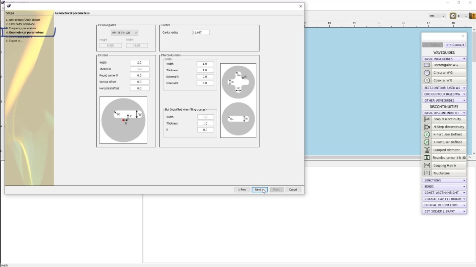 First, we specify the order and mode of the filter. We can also choose whether to calculate the coupling matrix or import an existing one, and choose an accuracy level for the calculation.