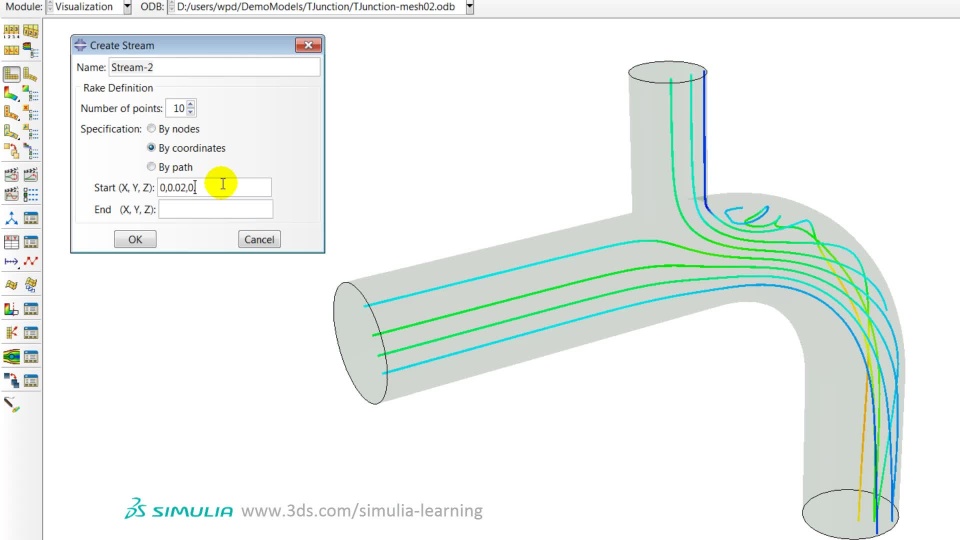 This file includes the example model shown in the demonstration. It also includes the step-by-step instructions (Streamlines-TJunction-StepByStep-Abaqus612.pdf) to help you practice creating streamlines.