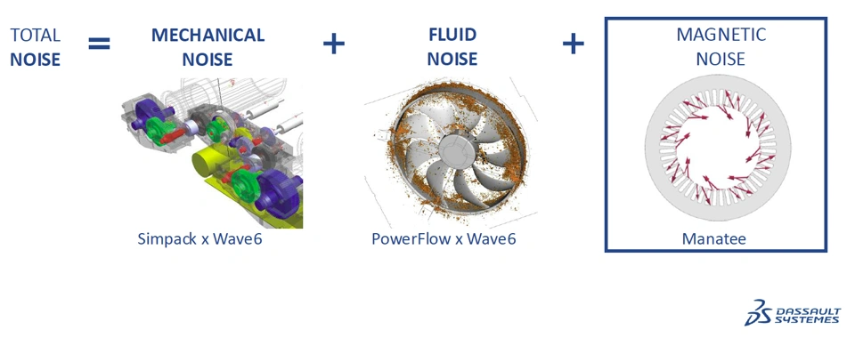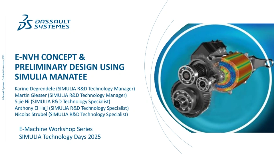 This presentation illustrates the assessment of noise and vibrations of electric drives induced by electromagnetic forces with Manatee. A live simulation is first detailed, analyzing the main magnetic noise issues on an advanced reference case. As designing high-quality electric machines requires subsequent e-NVH levels control, a noise mitigation technique based on a rotor dual-notch is then investigated. Tradeoffs between electromagnetic performances and acoustic levels are explored through a parameter sweep. An optimized electric machine design is finally identified, emphasizing the value of tracking the e-NVH risks from the beginning of the industrial project.