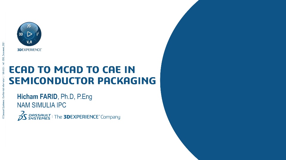 This presentation sheds light on the latest SIMULIA solutions in terms of ECAD import, ECAD Translation into MCAD, and Export to CAE. We also discuss different levels of simplification to make subsequent modeling more efficient.