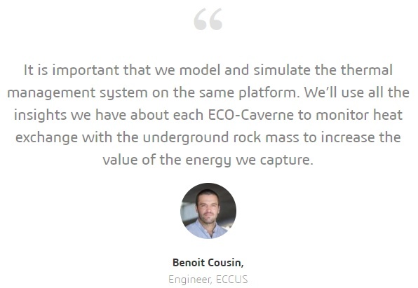 Read how ECCUS is using the simulation capabilities on the 3DEXPERIENCE Cloud platform, specifically the Fluid Dynamics Engineer role, for modeling thermal behavior as well as defining heating, ventilation, air conditioning, and electrical system requirements of their underground storage facility, the ECO-Caverne™.