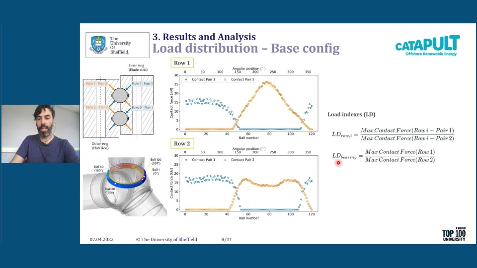 In his presentation, he talked about the "Effect of Supporting Structure Flexibility on the Load Distribution of a Wind Turbine Pitch Bearing"