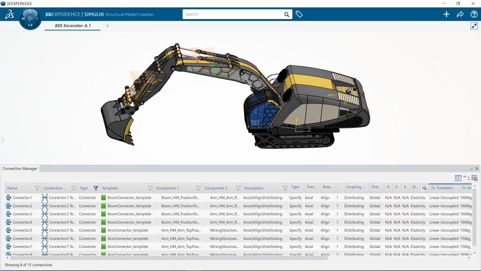 Modeling - Display of the parameters of all connections in the Connection Manager for efficiently reviewing them, especially in case of large assemblies