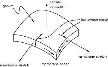Regular gasket elements have 3 degrees of freedom per node that can model an uncoupled membrane, transverse shear, and through-the-thickness behaviors,