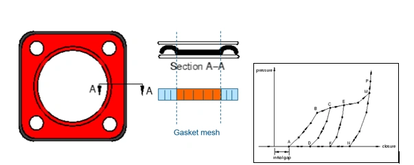 - Leveraging constitutive modeling to tackle complex gasket thickness behavior regarding the mechanical response through the thickness. The data can be input from test data or the results of finite element models of the gasket cross-section.