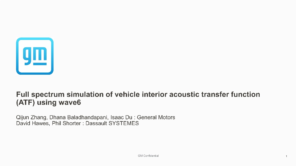 Bio: Qijun Zhang was born in China and graduated from Nanjing Institute of Technology. He then pursued a PhD in Mechanical Engineering from the University of Hong Kong. After completing his education, he joined the Noise and Vibration department at General Motors (GM) and has been with the company ever since. Currently, he serves as Sr Staff Engineer in the N&V VDDV group, and he is also the Global Simulation Owner.