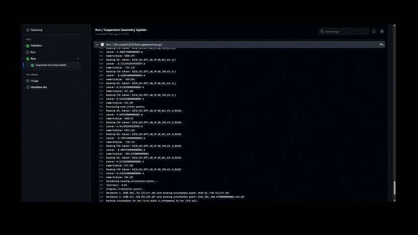 In this presentation, we will provide an overview of the CI pipeline we have developed to automatically run our Simpack simulations anytime our models are updated. We will discuss the details of using Simpack's Wizard scripting functionality to run predefined load cases and how we used Simpack's Node.js scripting capabilities to summarize results and metrics from the simulations. Additionally, we will explain how automated workflows start these Simpack scripts and how we store and visualize the data in a SQL database with a report dashboard viewable in a web browser.