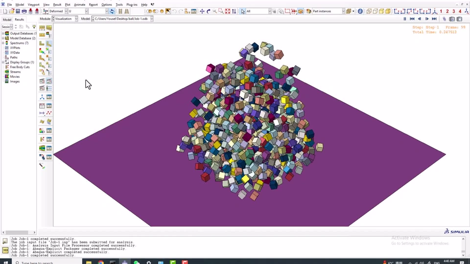 In this simulation, thousands of parts are influenced by gravity 🌍 and undergo dispersion 🔄.
