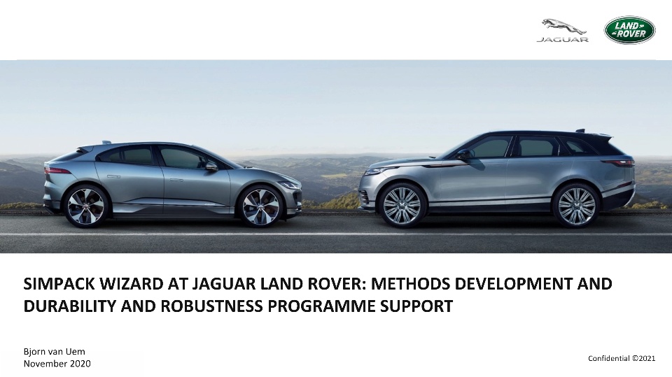 During the MBS Tech Days 2021, Bjorn van Uem from Jaguar Land Rover held a presentation titled " Simpack Wizard at JLR: Methods Development and Durability and Robustness Programme Support".