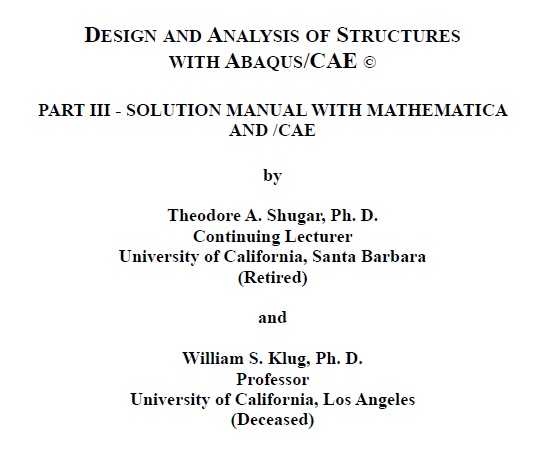 Part III - Solution Manual with Mathematica & /CAE of the book Design and Analysis of Structures with Abaqus/CAE - FEM Theory, Procedures and Exercises has just been published and, thanks to the generosity of @TS, is available for free download here in the community.