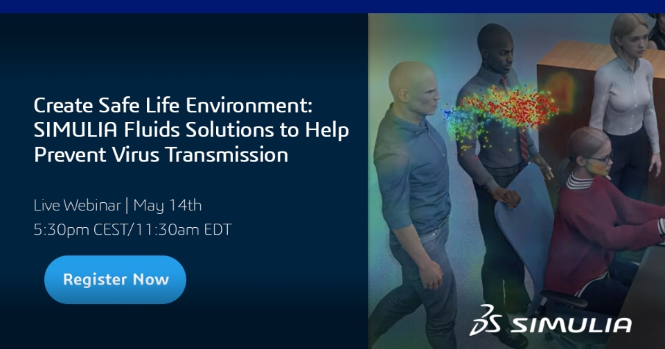 Minimization of risk is key in sanitary crisis management. With a zero tolerance policy, many companies must be able to design spaces that limit virus propagation, while still providing a comfortable climate. Simulation can help assess the efficiency of these safety measures, helping to create safer places to work. Register now for our upcoming webinar to learn how SIMULIA fluids solutions are used to help prevent virus transmission!