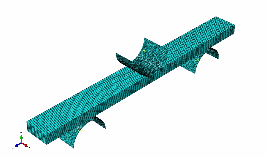 Abaqus FEA model of 3-point bending test (from Anders Winkler).