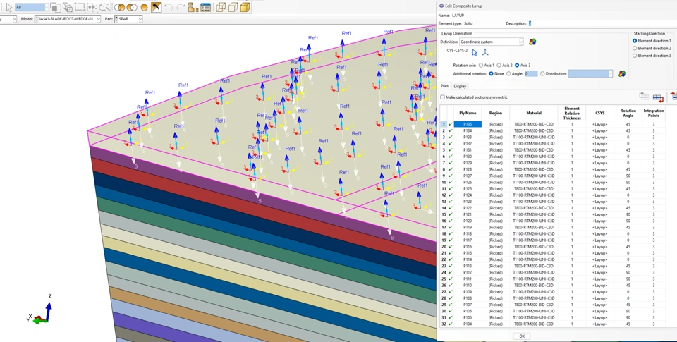 I have a model with continuum solid elements, that has a 30-ish ply laminate. I am using C3D elements because I need a real close look at interlam behavior. The geometry and laminates are axisymmetric (not in terms of the modeling space which is 3D, just in terms of the actual geometry being revolved about a center axis.
