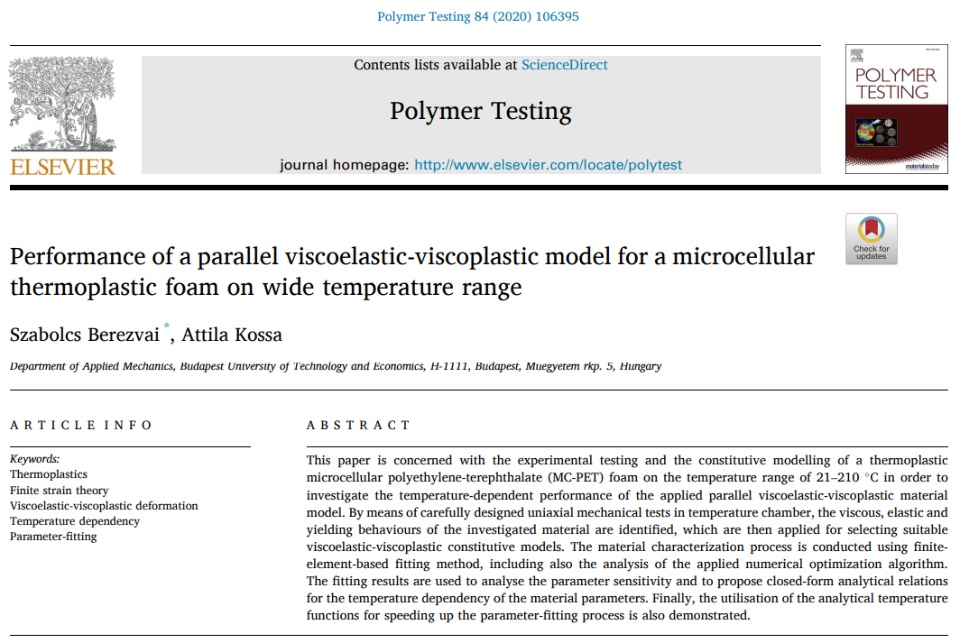 This second paper is more focused on the MC-PET material (a thermoplastic microcellular polyethylene-terephthalate foam), the testing at various temperatures and the various responses from the TLVP material model.