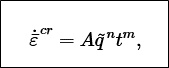 This uses an older style "creep law", where the units on the "A" parameter are a bit strange. The "A" parameter can also get very small.