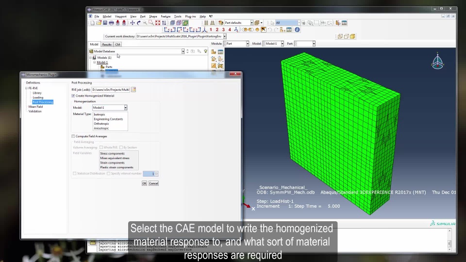 - Automated imposition of different types of boundary conditions, with the ability to drive the FE-RVE using user-defined histories or with field history at a point from a larger-scale analysis.