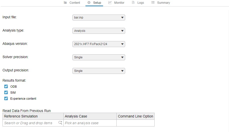 - You will also find solver and execution options for Abaqus (including reference simulations) in the new Setup tab: