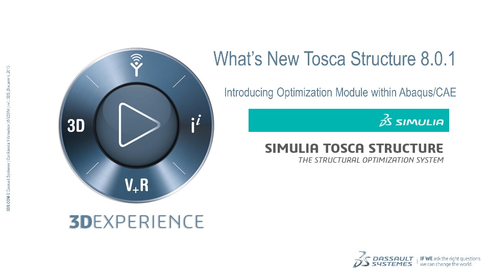 SIMULIA Tosca Structure, from Dassault Systèmes, is the leading technology for nonlinear structural optimization. It interfaces with industry standard FEA solvers to help accelerate innovative product development. It is being used successfully by global manufacturers to reduce time and costs while meeting challenging requirements for performance, weight, quality, and eco-efficiency.