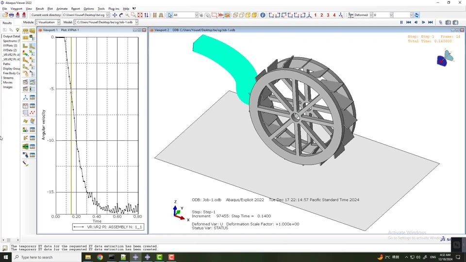 In this work, a traditional water wheel powered by flowing water is modeled. The simulation demonstrates how to use the SPH (Smoothed Particle Hydrodynamics) particle generation method to create water flow and study its interaction with the wheel.