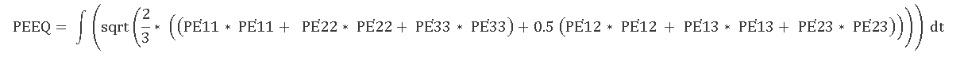 The formulae for PEEQ should be able to predict this cumulative nature of PEEQ. Hence, a slightly modified form of the already discussed equation which would take into account the rate of change of individual plastic strains and accumulation of PEEQ is presented below.