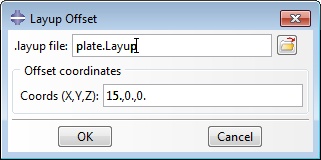 The 'Layup Offset'plugin takes the name of a layup file and the required offset coordinates (think of it as a vector translation from the origin):