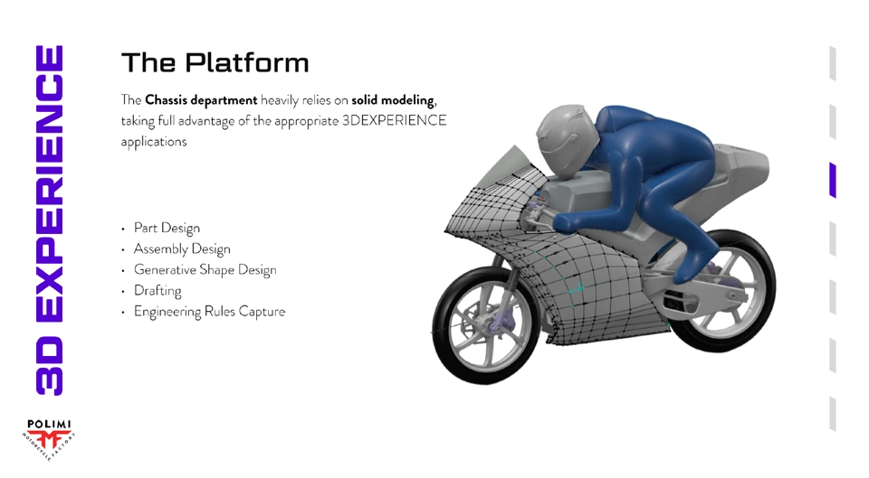 Polimi Motorcycle Factory is a student team that takes part in Motostudent, an international competition between universities, with the goal of designing and manufacturing the fastest motorcycle prototype.