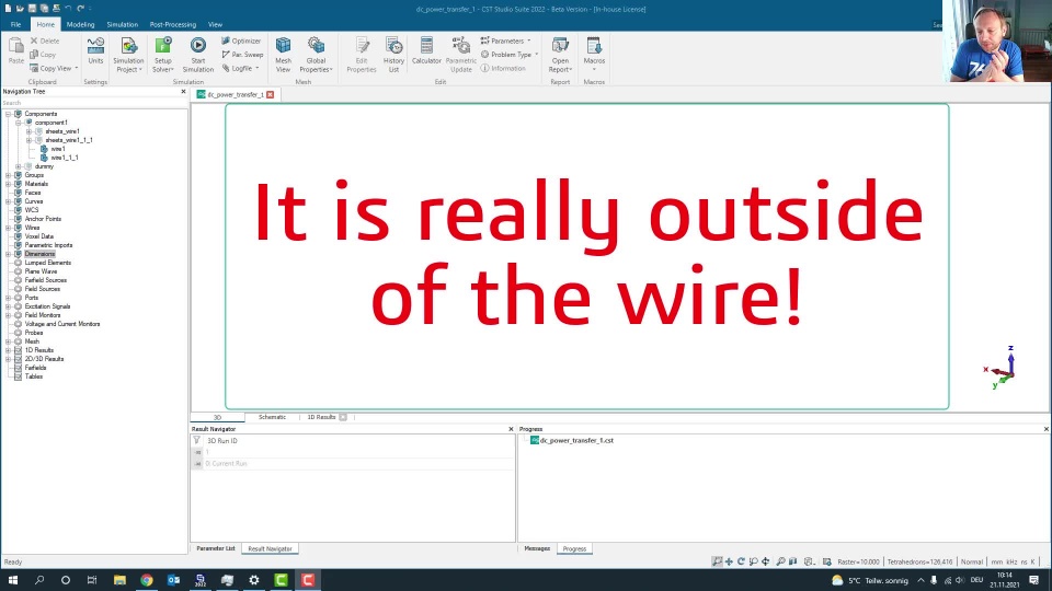 There were some recent discussions about the power flow in electromagnetics. Is all of the power flow really outside of the wire? Doesn't the skin depth let the power flow also inside the wire? I made a short video to explain what is happening... (Btw the riddle in the Veritassium video is really badly posed, the light bulb will not instantly lit as the power will be transferred around the wires. Even the fields only take a few ns to get to the bulb, they will not transmit the power (-: )