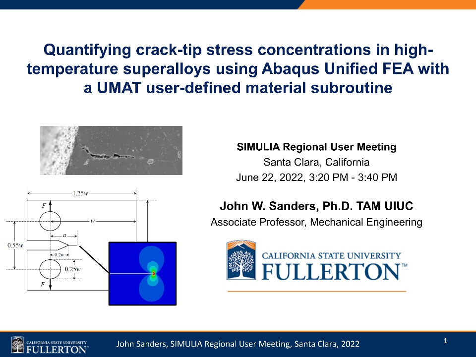We were pleased to have John Sanders from California State Fullerton present at the 2022 SIMULIA Santa Clara Regional User Meeting, June 22, 2022.