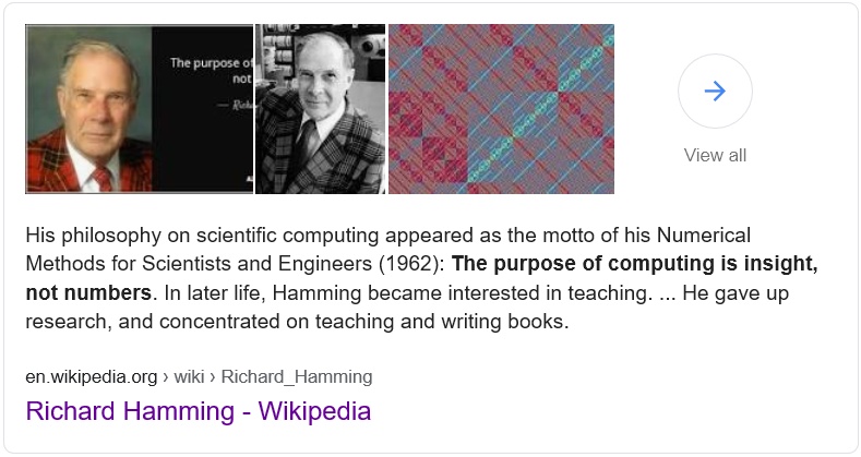 "The purpose of computing is insight, not numbers"