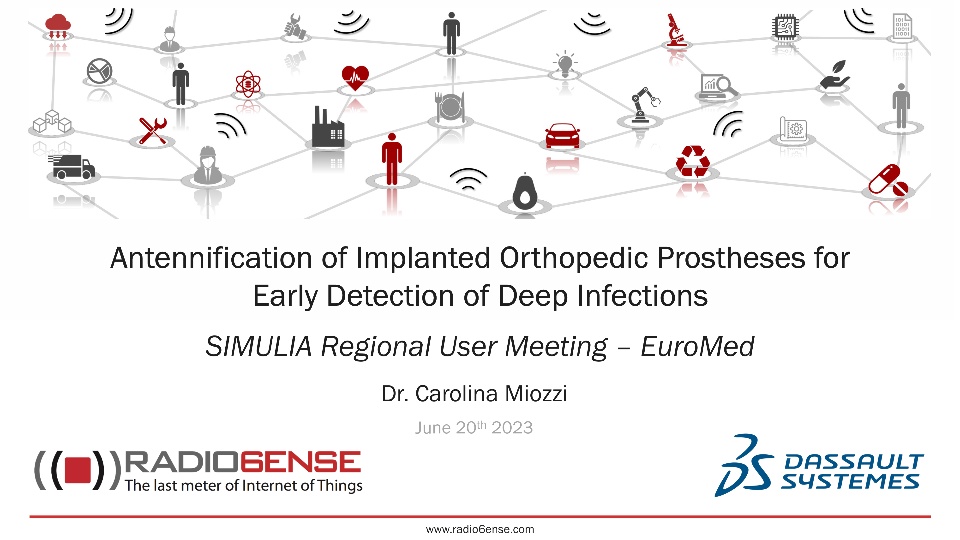 We are pleased to share with you the presentation titled "Antennification of Implanted Orthopedic Prostheses for Early Detection of Deep Infections" which Carolina MIOZZI presented at the SIMULIA Regional User Meeting EuroMed — Italy, in Modena, on June 20, 2023.