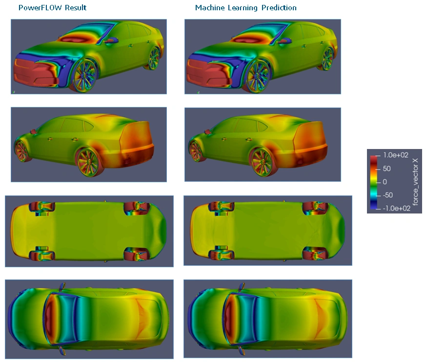 This blog illustrates how aerodynamic data obtained from the 3DS CFD PowerFLOW software combined with data-driven methods can enable car manufacturers to obtain clean 3D contour plots of the vehicle’s surface X-force distribution, the associated integrated vehicle drag force and more within several minutes on a single GPU.