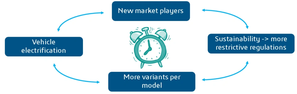 The use of the term digital twin is becoming more and more widespread. It represents a concept in which a digital replica of an object, or even a living being, is created to better understand, engineer, and optimize the real-life twin. So far, in the realm of vehicle aerodynamics, low-fidelity and high-fidelity computational fluid dynamics (CFD) software has been used to predict and improve the aerodynamic behavior (e.g. drag, lift, and yaw characteristics) of the car, thereby bypassing the need for costly physical prototypes until the very final stages of the vehicle design cycle. However, a proper digital twin of a vehicle should be able to illustrate the effect of geometry changes in near real-time, which, so far, using conventional computing architectures is not possible. Quantum computing, a very nascent technology, may solve this, but, for now, the only option is to resort to fast surrogate machine learning (ML) models. These models have learned from past aerodynamic data to predict the new aerodynamic performance of vehicle shapes that were not seen during the ML model training phase. This prediction speed-up solves the global problem of an increasing need for a shorter time-to-market in an ever-more competitive market landscape, where there is a drive for vehicle electrification and there are stricter sustainability regulations as well (see figure 1).