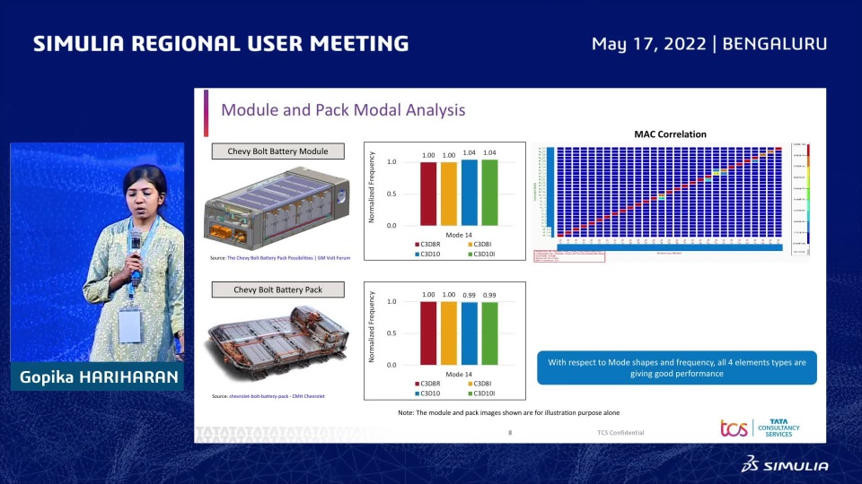 Biography: Gopika Hariharan, a Mechanical Engineering graduate, works as a CAE Engineer in Tata Consultancy Services. She has around three years of experience. She has been part of the Automotive OEM project and has supported various Battery Structural Simulations. She had also been part of capability projects where the problem statements were addressed and had been able to provide solutions that reduced human efforts and brought cost savings.