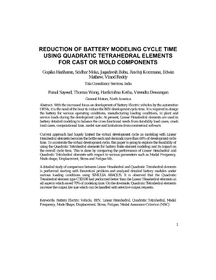 Co-author: Sridhar MEKA, Jagadeesh BABU, Ravitej KOMMANA, Edwin MATHEW, Vinod REDDY Tata Consultancy Services, India & Faisal SAYEED, Thomas WANG, Harikrishna KETHA, Virendra DEWANGAN, General Motors, North America