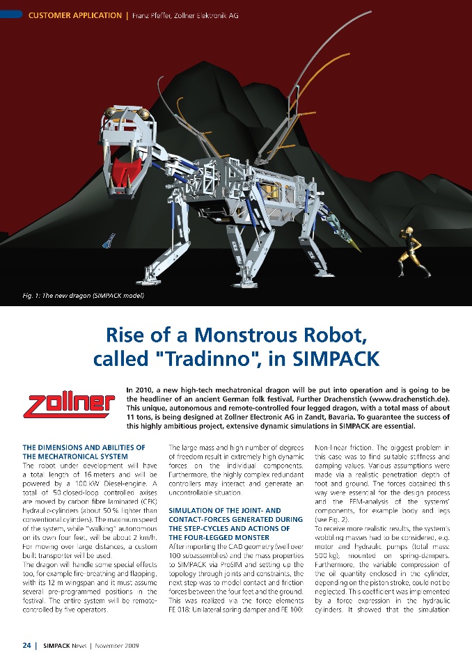 - read the Simpack News article “Rise of a Monstrous Robot, called "Tradinno", in Simpack” by Franz Pfeffer, Zollner AG (see attachment)