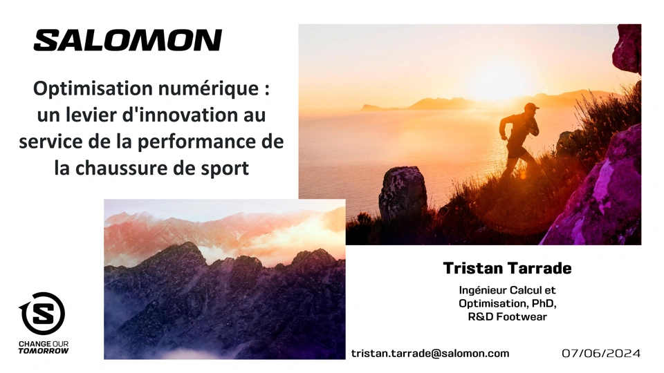 Le marché de la chaussure de sport est un marché fortement concurrentiel où les exigences de qualité, de performance et de respect de l’environnent formulées par les consommateurs se confrontent à des contraintes de coûts et d’évolutions règlementaire fortes. Dans ce contexte, et pour répondre à ces enjeux, les outils de simulation numérique ont été directement intégrés par Salomon Footwear dans son processus de développement produits afin d’accélérer l’innovation, les prises de décision et l’éco-conception de ses produits. Nous présenterons, au travers de 2 cas d'usage, comment l’optimisation numérique a été utilisée pour accélérer cette phase de développement produits et améliorer la performance fonctionnelle et environnementale des chaussures de course à pied.