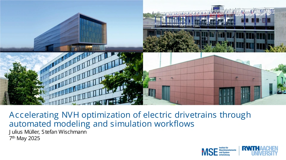 This presentation displays a method for automating the modeling and simulation workflow for structural dynamic eMBS models to efficiently perform structural dynamic optimizations at the component level in the FEM domain and to evaluate these optimizations at the drivetrain level using an eMBS model of an electric drivetrain. The proposed approach involves a consistent modeling syntax enabling automation of all modeling steps required in FEM and eMBS domains.