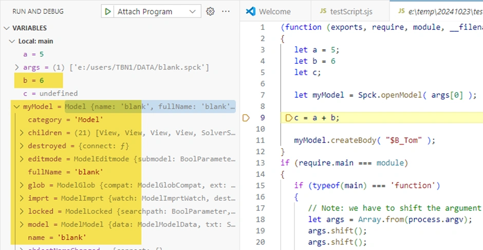 With a debugger configured correctly, it is possible to step through the Simpack Javascript code which is a great aid in finding and fixing issues.