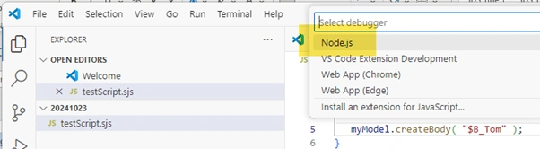 - After pressing the hyperlink, it is necessary to select ‘Node.js’ again before an initial ‘launch.json’ file is opened in a new editor