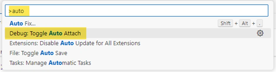 - If preferred it is also possible to get the debugger to automatically attach when a Simpack script is started. From within VS Code, press « ctrl + Shift + P » and select 'Toggle Auto Attach'