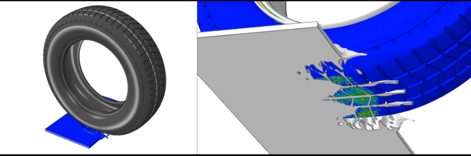 The Abaqus/Explicit finite element solver is one of the products driving these advances. It excels at solving highly nonlinear problems – both short-duration transient dynamic events like automotive crash or drop tests for consumer electronics, and quasi-static events like metal forming and material damage that are challenging for implicit solvers but extremely useful for rapidly developing manufacturing processes or assessing the safety of a design. Abaqus/Explicit also includes specialized solution techniques like coupled Eulerian-Lagrangian (CEL) analysis to model problems like tire hydroplaning or ballistic impact; smoothed particle hydrodynamics (SPH) to model problems like sloshing or airbag inflation; and the adaptive remeshing of arbitrary Lagrangian-Eulerian (ALE) analysis to model forming processes with extreme deformation.