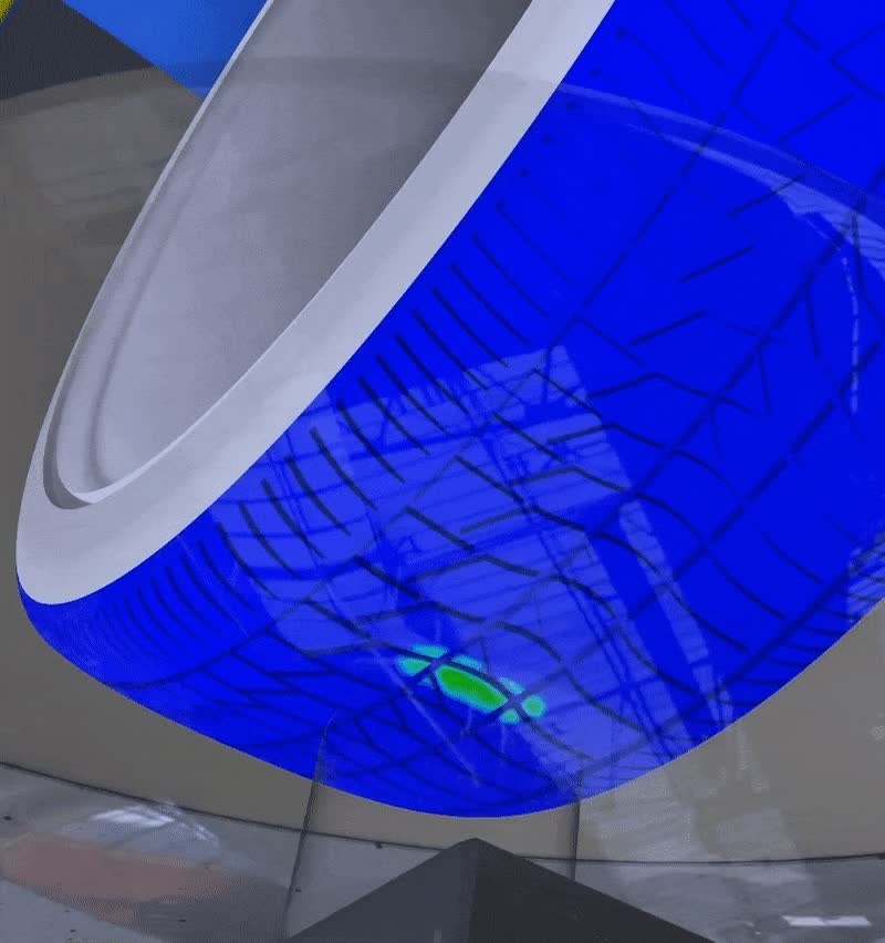 As we have a full virtual twin of the tire assembly in conjunction with the installed antenna, we will perform the analysis at the worst loading case, which is when the tire rotation places the antenna at the bottom of the tire with maximum expected deformation, using Tire Analysis Engineer Role on the 3DEXPERIENCE platform.