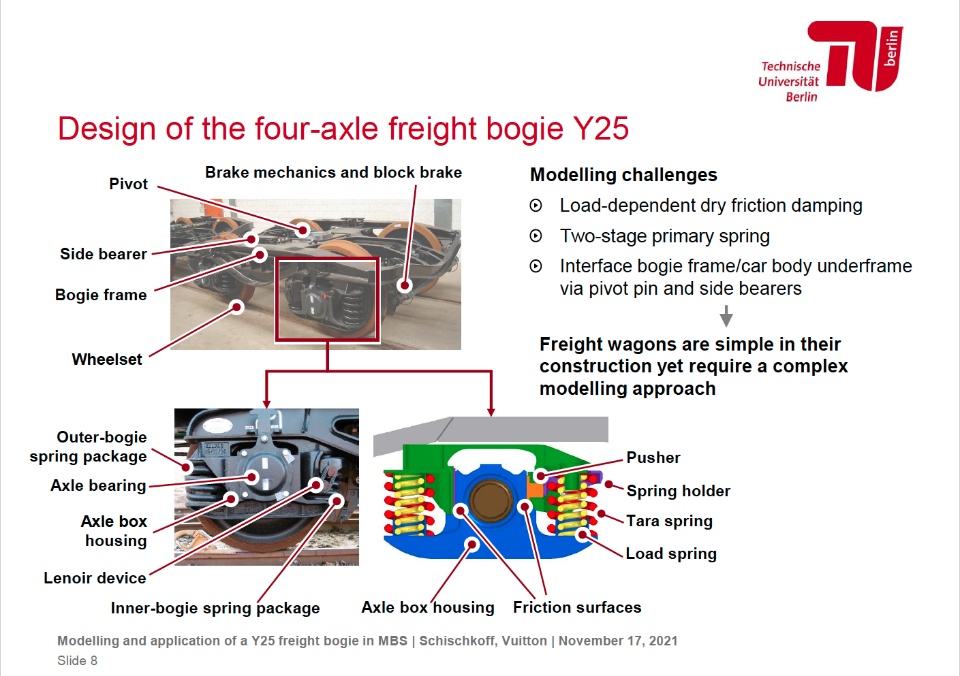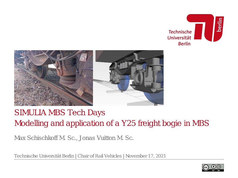 During the MBS Tech Days 2021, Jonas Vuitton and Max Schischkoff from the TU Berlin held a presentation called "Modelling and Application of a Y25 Freight Bogie in MBS".