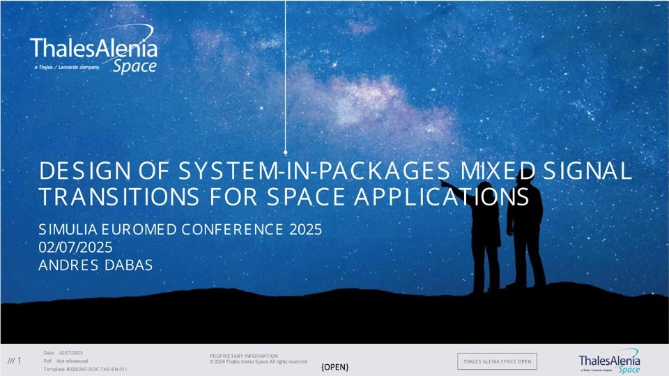 This presentation covers the use of 3DS CST for the design of mixed signals (High-speed, Microwave) transitions to be use in space applications SiPs. The simulations take into account the need to design a package substrate that can survive in harsh environments, such as space, and an overview of how its testing is performed is also discussed.
