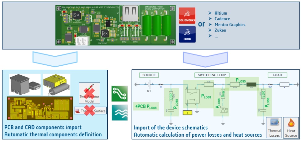 As shown in Fig.1, the simulation process is relatively simple. Firstly, a user collects all necessary data (e.g. E-, M-CAD models, PCB layout with its stack-up and schematics, PCB component shapes, and so on). Nowadays, almost all of that information is already stored inside files generated by well-known EDA tools.