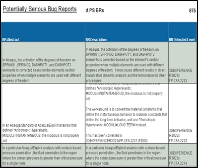 This article includes a spreadsheet listing of the SIMULIA potentially serious errors. | |