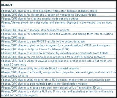 Several plug-ins are provided on the Abaqus installation CD. The portal provides example plug-ins as well as access to a community of users that fosters the advance of the Abaqus Scripting Interface and the Abaqus GUI Toolkit. You can also write your own plug-ins. | |