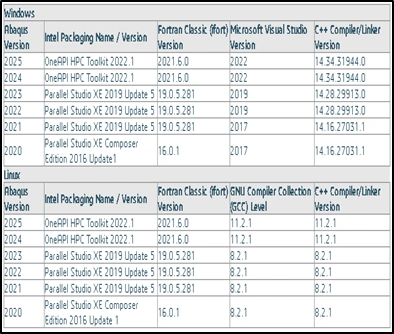 The Intel oneAPI compiler release has not been officially tested by SIMULIA. SIMULIA recommends using the compiler version(s) that have been tested with Abaqus. Check the Program Directories for the latest information on supported compiler versions. Newer compiler versions may work, but have not been tested.