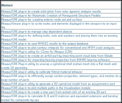 Several plug-ins are provided on the Abaqus installation CD. The portal provides example plug-ins as well as access to a community of users that fosters the advance of the Abaqus Scripting Interface and the Abaqus GUI Toolkit. You can also write your own plug-ins.